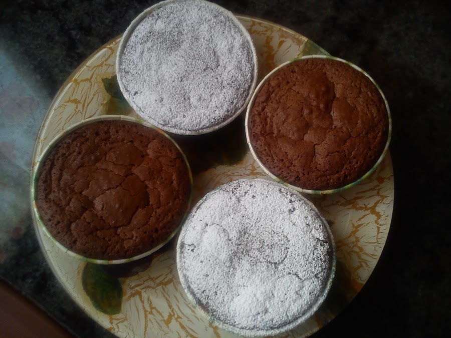 Se vierte en el molde elegido y se introduce en el horno precalentado a 180 grados unos 30-35 minutos o hasta que pinchéis en el centro y salga el cuchillo limpio. También se puede hacer la versión pastelito que con 18-20 minutos tendrá suficiente según el tamaño.