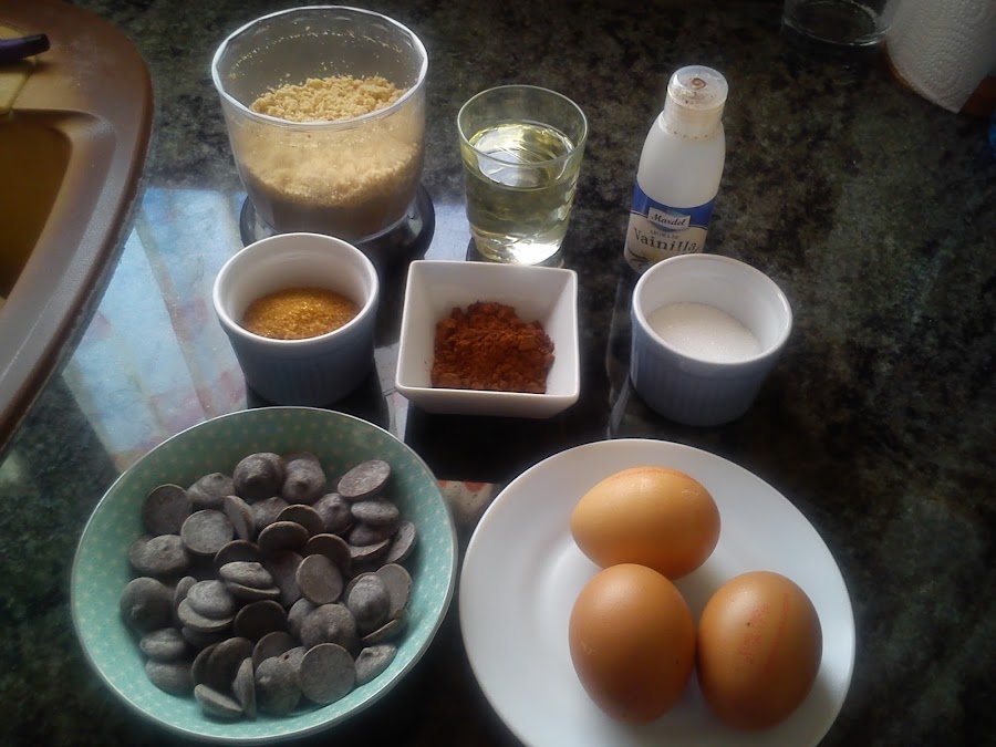 Así que me puse manos a la obra y este pastelito me apetecía mucho entre otras cosas porque me parece muy interesante compartir recetas que no tengan gluten, cada vez hay más gente que aunque no sean alérgicos sí que tienen intolerancia y que les cuesta encontrar cosas sin gluten que estén realmente buenas, pues éste lo garantizo está buenísimo, eso sí te tiene que gustar el chocolate porque entre el cacao puro, el café soluble (que potencia el sabor a cacao) y el chocolate fundido sabe mucho a chocolate.