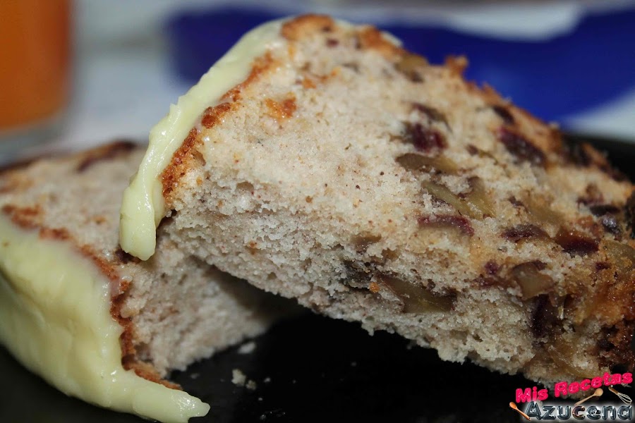Todo esto que os estoy contando viene a relación del cake de hoy, desde luego a la persona que no le gusten los dátiles que no mire la receta, jeje, lleva una cantidad generosa de ellos, ya os digo yo que no va a ser su preferida, jeje, antes para mi tampoco lo habría sido. En este momento, he de decir que me encanto el sabor con el que quedo, y que me gusta mucho encontrarme los trocitos de dátil en cada mordisco. Dificultad en la preparación, ninguna, es fácil de hacer y más fácil aún de comer.