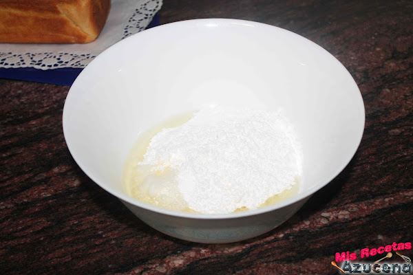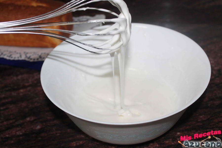 Mientras se enfría prepararemos el glaseado, solo tendremos que poner en un cuenco el azúcar glass junto con la clara de huevo y las gotas de limón, batiremos bien durante unos 3 o 4 minutos.