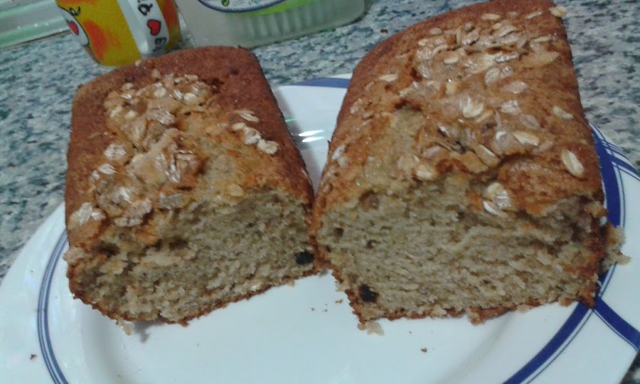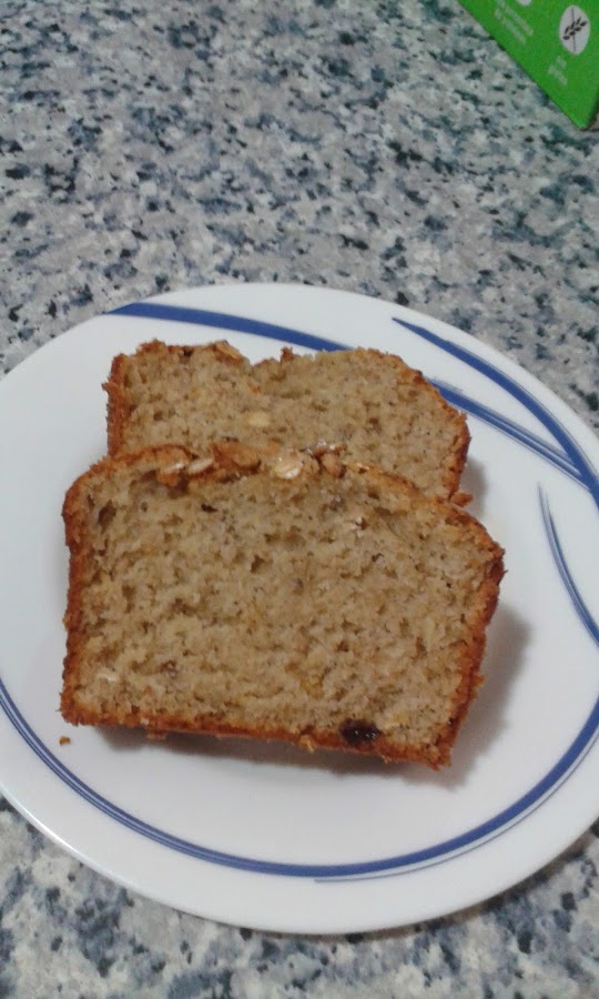 Tenia un paquete de muesli así que pensé en hacer un bizcocho además encontré un plátano en el frigorífico y se lo añadí. Me quedó riquísimo.