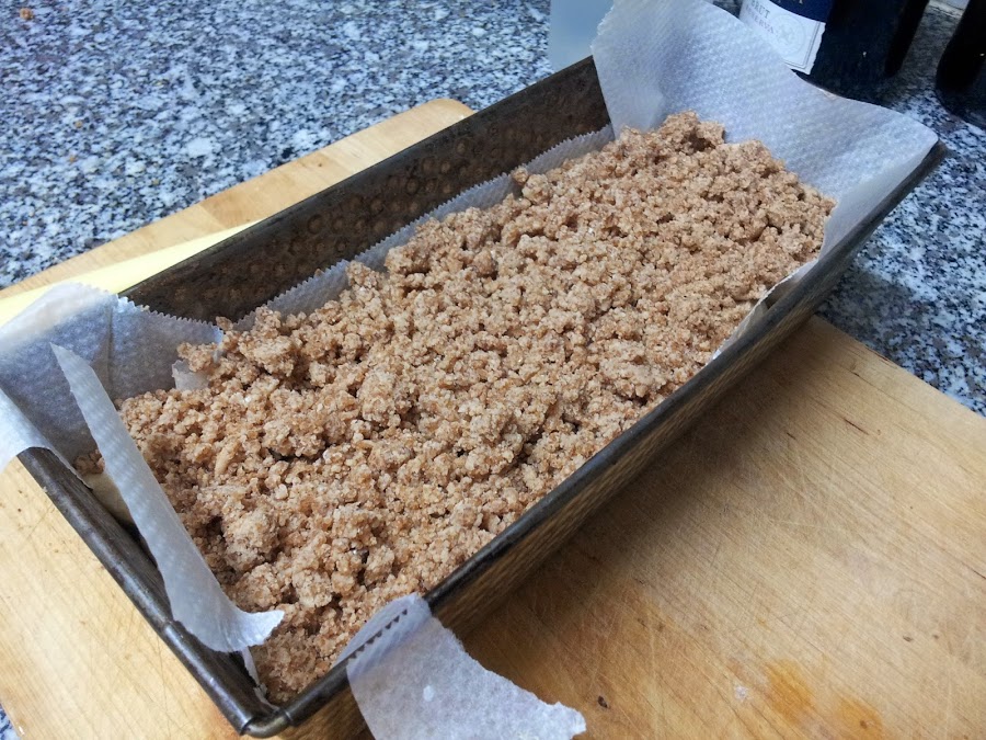 Se esparcen estos "grumos" encima del cake, como en la foto.
