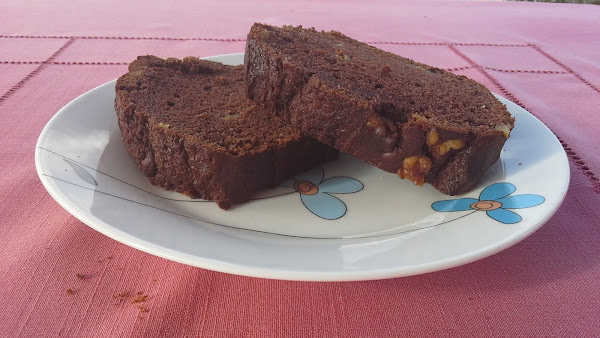 Engrasamos un molde con aceite o mantequilla, volcamos la mezcla en él y colocamos las nueces partidas por encima, el horno las tostará y quedarán crujientes.