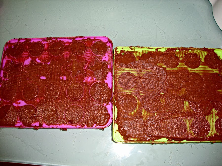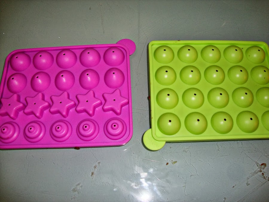 Luego se rellenan los moldes de cake pops (se puede hacer introduciendo la mezcla en una manga pastelera y rellenando los huecos) y luego se enrasa con una espátula o cuchillo.