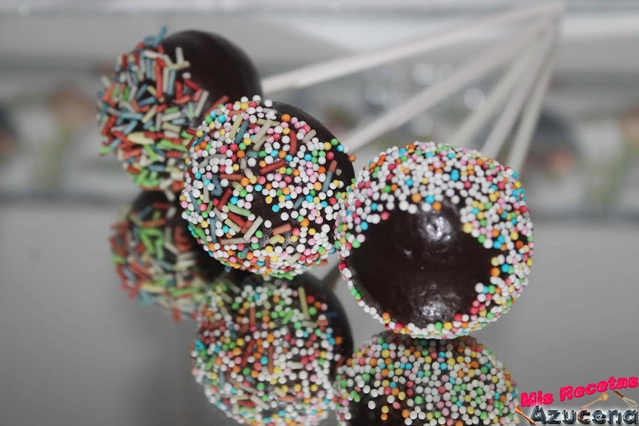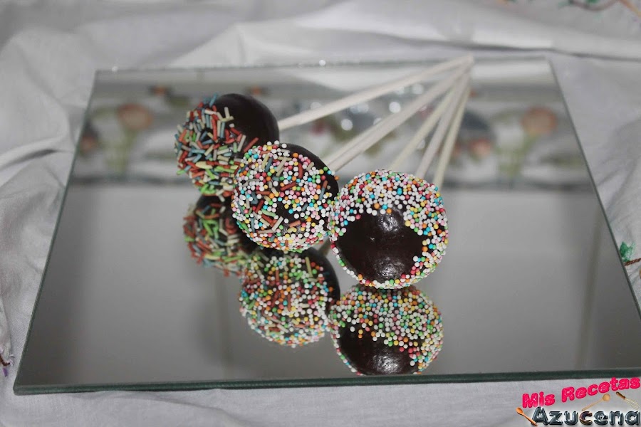 Bueno, pues eso es lo que yo he querido probar, el efecto espejo, jeje, de forma más sencilla como podéis ver porque yo os presento unos simples cake pops, pero la verdad es que me encanta como quedan, seguro que le copio alguna vez más.