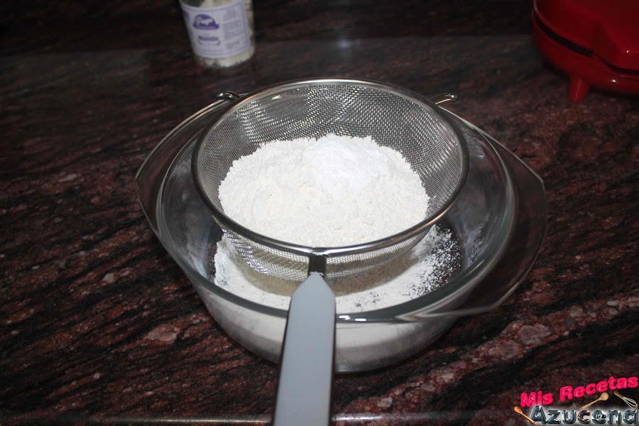 En otro cuenco tamizaremos la harina junto con la levadura.