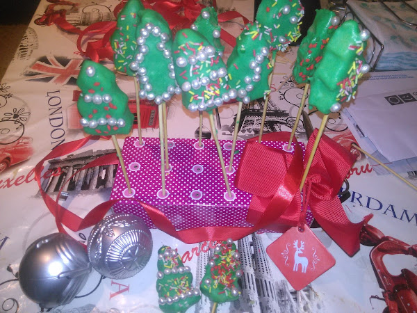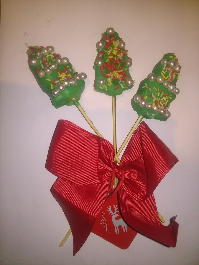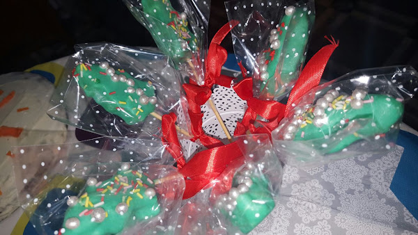 Nosotros las hicimos muy especiales y colocamos cada cake pop en una bolsita individual atada a la brocheta con un lazo navideño.