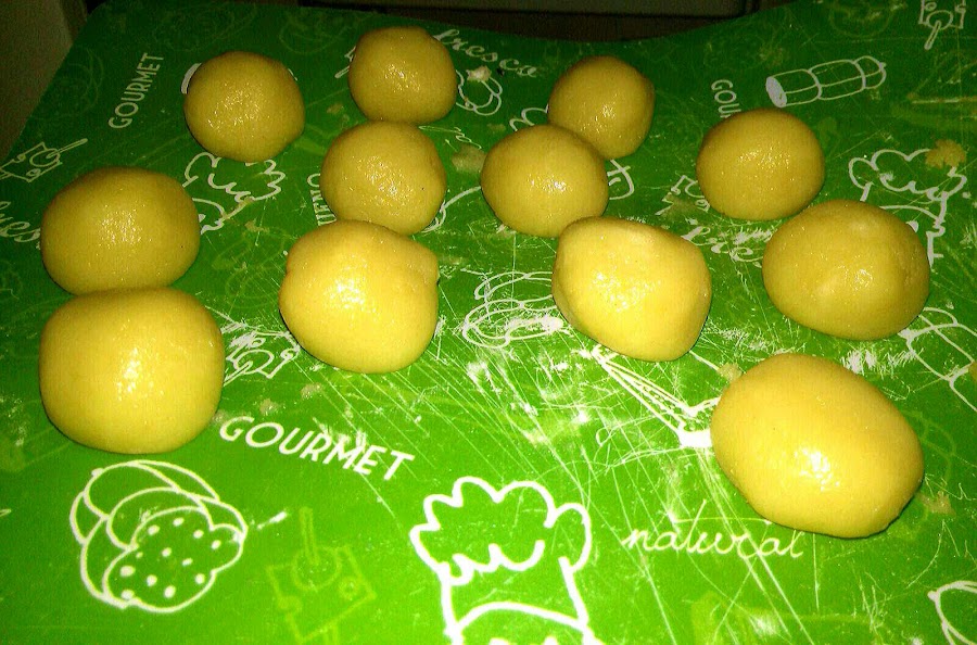 Racionamos la masa. La masa pesa unos 300 gramos entonces hacemos porciones de 25 gramos cada una para que salgan 12.