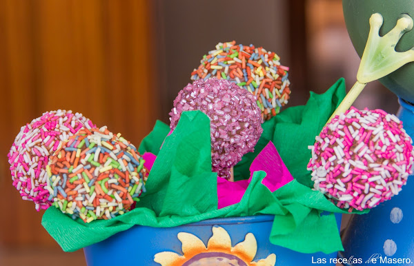 El sábado pasado, Ismael fue a montar a los karts con unos amigos y me pidió que hiciese alguna cosita para los niños. No me avisó con mucho tiempo de antelación, así que estuve pensando que podía hacer que fuese sencillo y que tuviese una apariencia divertida para los peques y se me ocurrió hacer cake pops sobre la marcha.