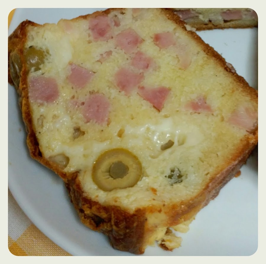 CAKE SALADO CON ACEITUNAS, QUESO Y JAMON (sin gluten)
