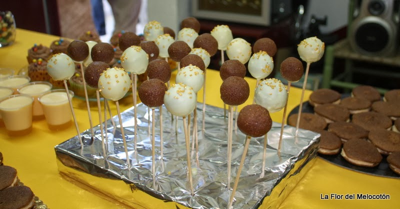Volvemos a deshacer chocolate y cogiendo las bolas por los palitos las introducimos girándolas para que el baño de chocolate sea uniforme. Nada más acabar de bañarlas echamos la decoración que queramos por encima y las pinchamos en pan duro, una esponja de las de floristería o poliespán. Dejamos que se endurezca en la nevera y ya las tenemos listas.