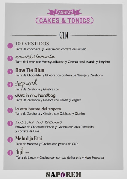 Además, en la carta cakes & tonics de Saporem encontraréis muchas otras combinaciones deliciosas de otros bloggers. Yo probé todas las tartas (sí, sí, todas...) y es difícil elegir una. ¡Están todas ricas ricas!!!