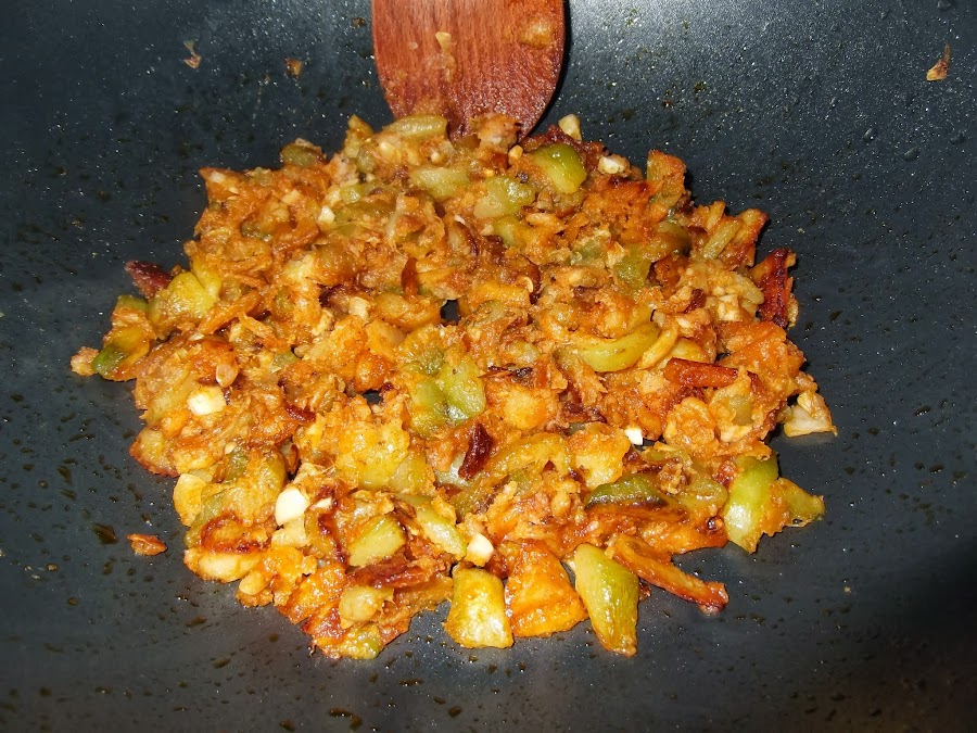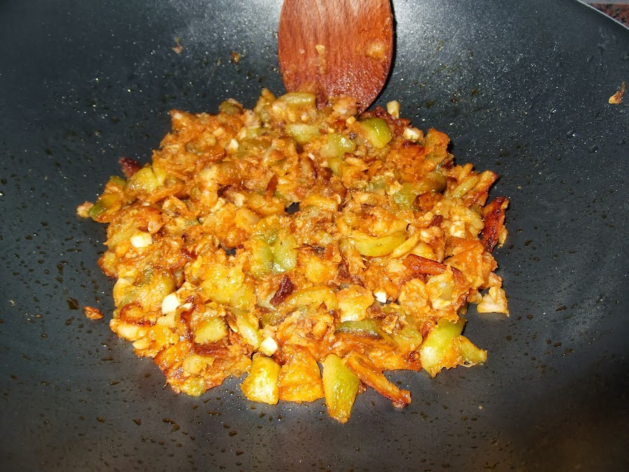 Ahora tiene que estar media hora a fuego medio mientras se sofríen los dos productos en su propios jugo, si se os agarra (a mí no me ocurrió, porque la sartén era nueva), no os preocupéis, ya que antiguamente se agarraba bastante con las sartenes que utilizaban y eso era lo que le ofrecía ese sabor característico.