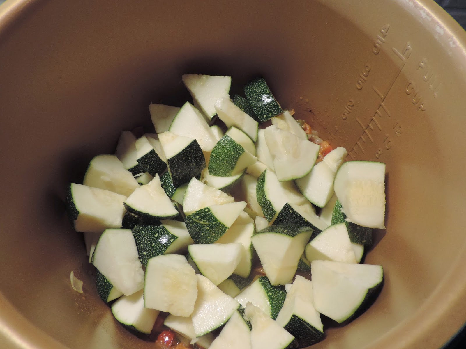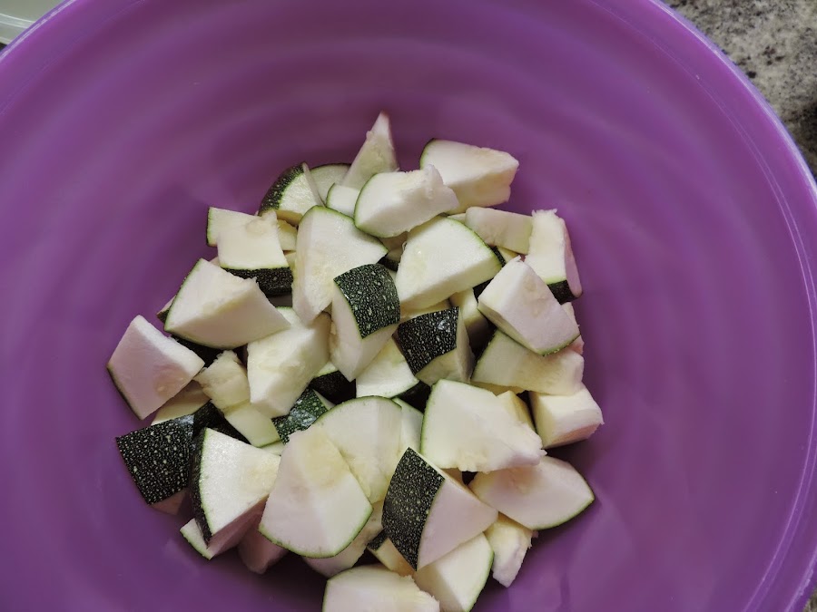 Lavamos y cortamos el calabacin en trozos no muy grandes, yo no lo he pelado porque me gusta así.