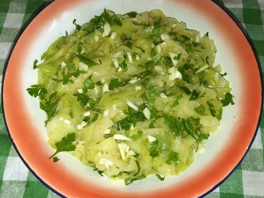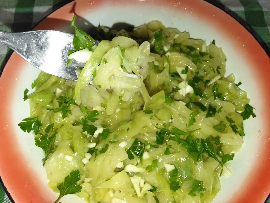 Y ya por último añadimos el perejil y el ajo bien cortado, mezclamos bien para que todos los sabores se mezclen y servir bien frío