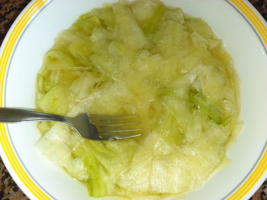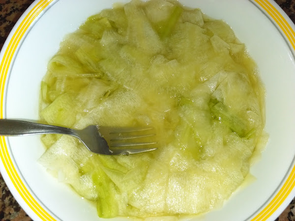 Me regalaron hermosos calabacines, el otro día hice CALABACIN REBOZADO y como aún tenía pues estuve buscando una receta para hacer algo diferente y de paso iniciarme en recetas aptas para vegetarianos y veganos, y encontré ésta, todo un acierto, como entrante para días de calor viene genial y como acompañamiento de otros platos igual