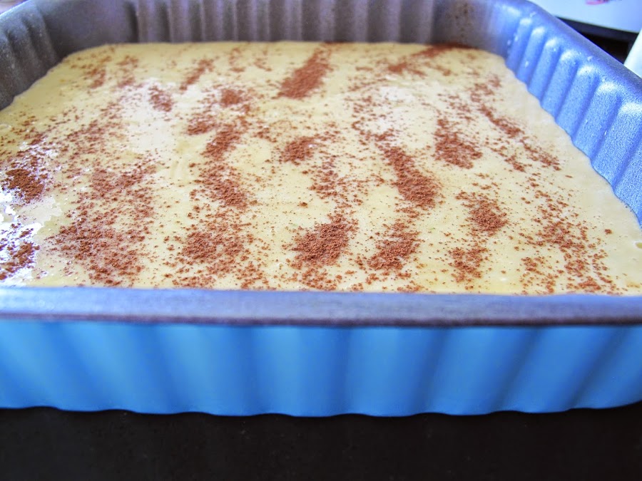 Engrasamos un molde, ponemos la masa, espolvoreamos con la canela y cocemos unos 30 minutos aproximadamente (lo mejor, es la comprobación del palillo una vez transcurrido este tiempo).