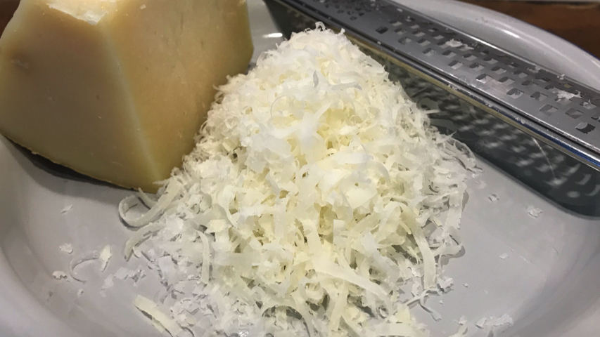 Ralla abundante queso manchego curado sobre el calabacín.
