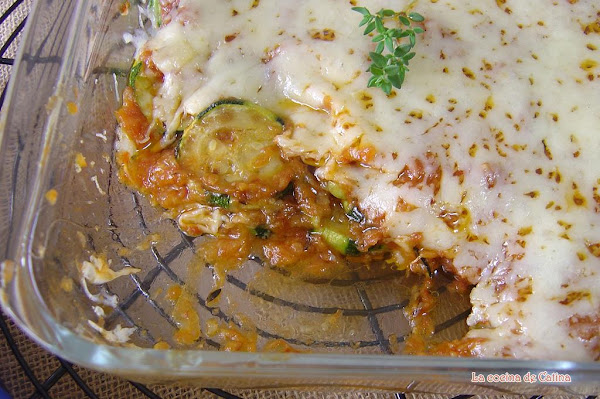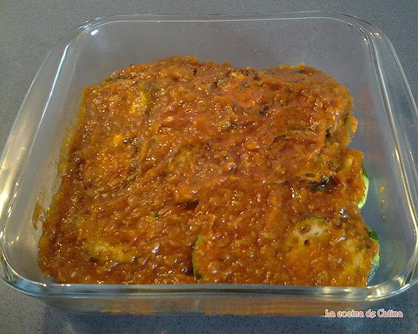 Pasar por un chino y echar esta salsa sobre los calabacines, espolvorear con el queso rallado y trocitos de mantequilla y meter al horno con el grill encendido y dorarlo al gusto.