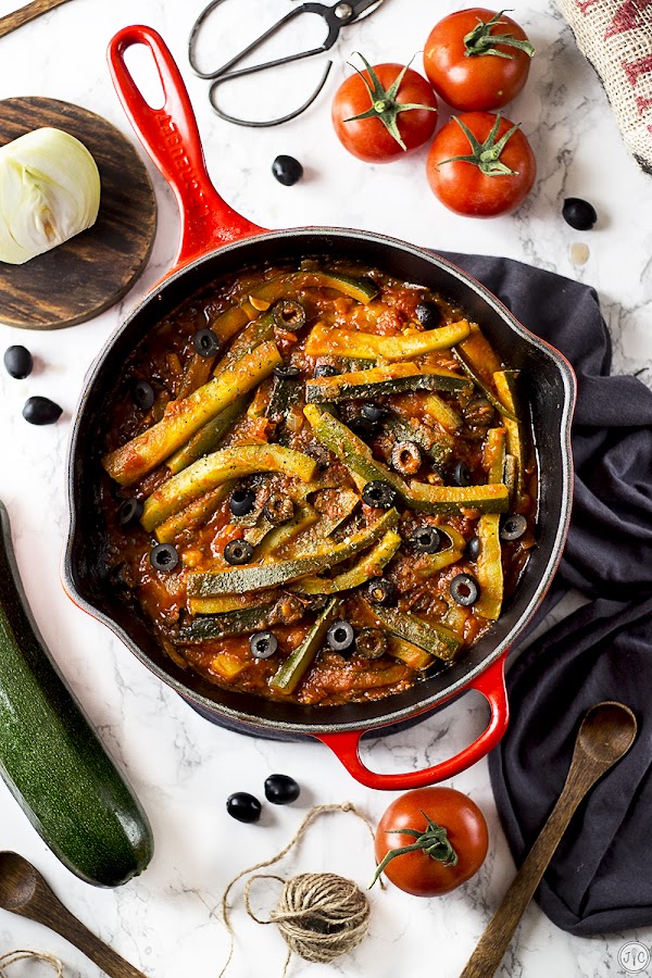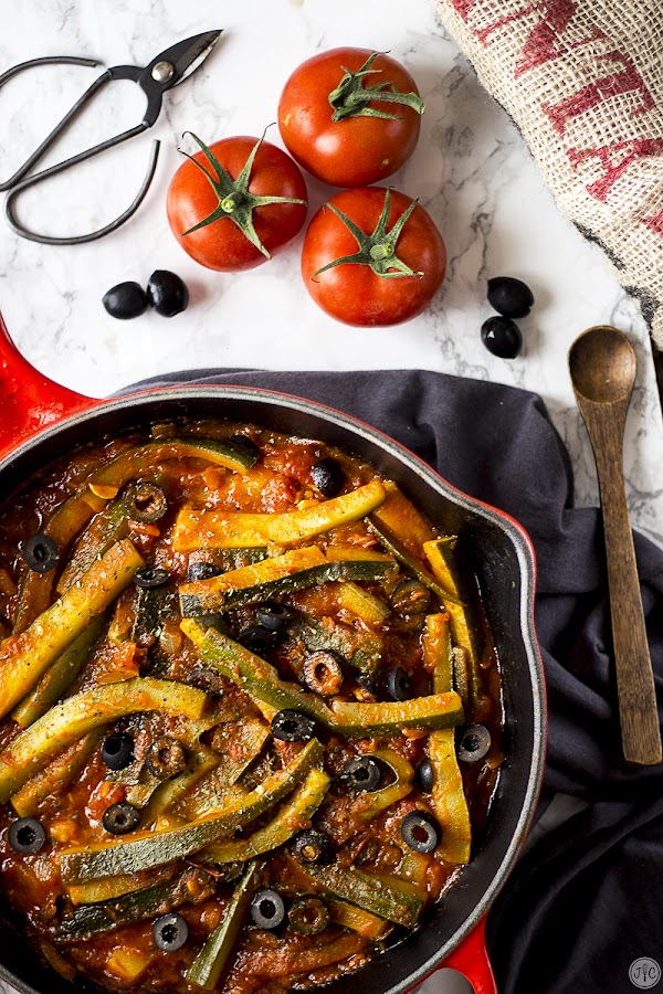Los calabacines a la nizarda una receta muy sencilla que se prepara en Niza, en la región de Provenza-Alpes-Costa Azul, y que se prepara principalmente con calabacines, salsa de tomate y aceitunas negras. Un guiso muy fácil de hacer en casa y con el que podréis acompañar una infinidad de platos o comerlos tal cual. La receta original se realiza con el calabacín cortado en rodajas, pero me he animado a hacerlo de otra manera: cortado en bastones.