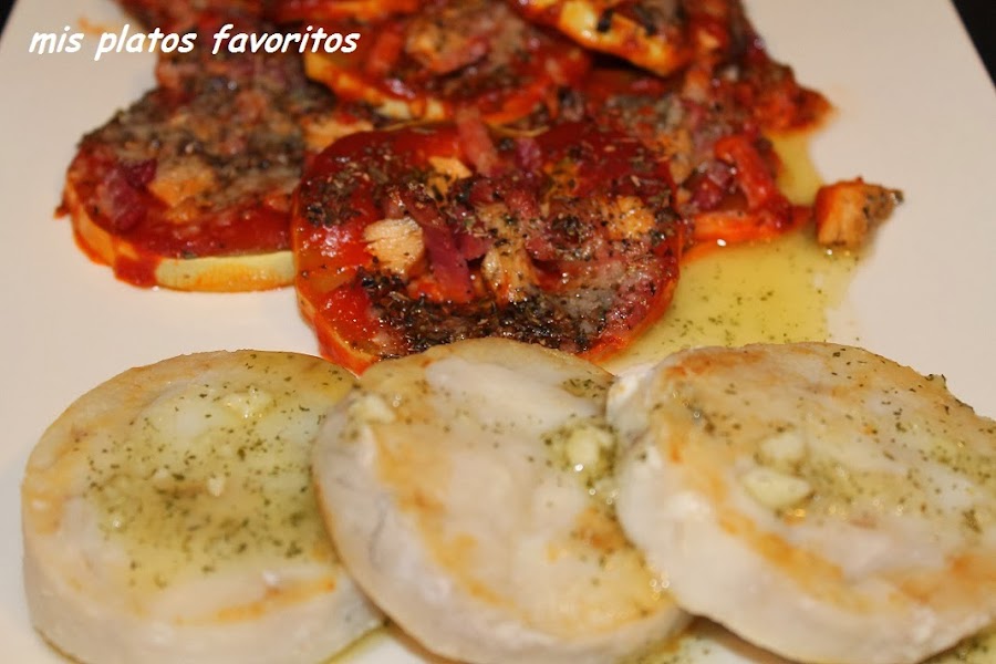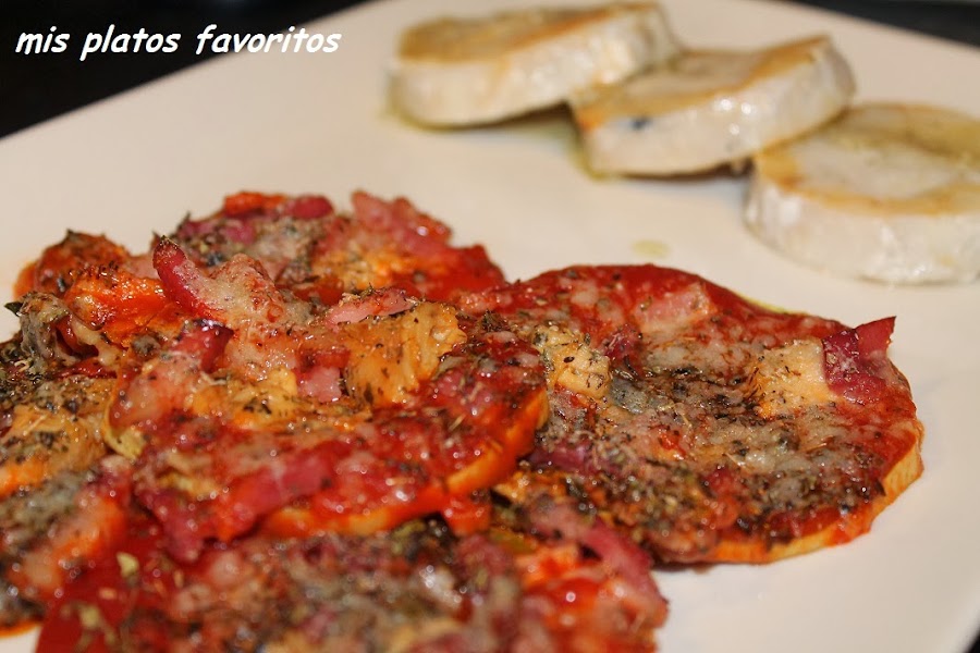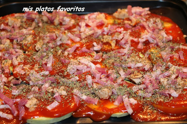 Echamos por encima el tomate, el bacon y espolvoreamos con orégano .