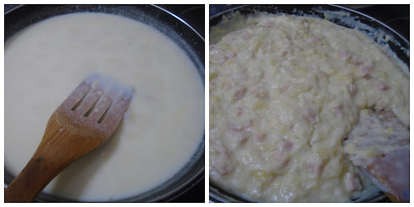 Incorporamos la pulpa o carne del calabacin junto con el fiambre de pavo a la bechamel removemos todo muy bien hasta que espese un poco más y se integren todos los ingredientes, retiramos del fuego y ya tenemos nuestro relleno listo para rellenar.