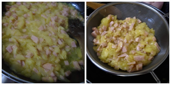 Lo primero que haremos es cortar el fiambre en trocitos pequeños. Reservar