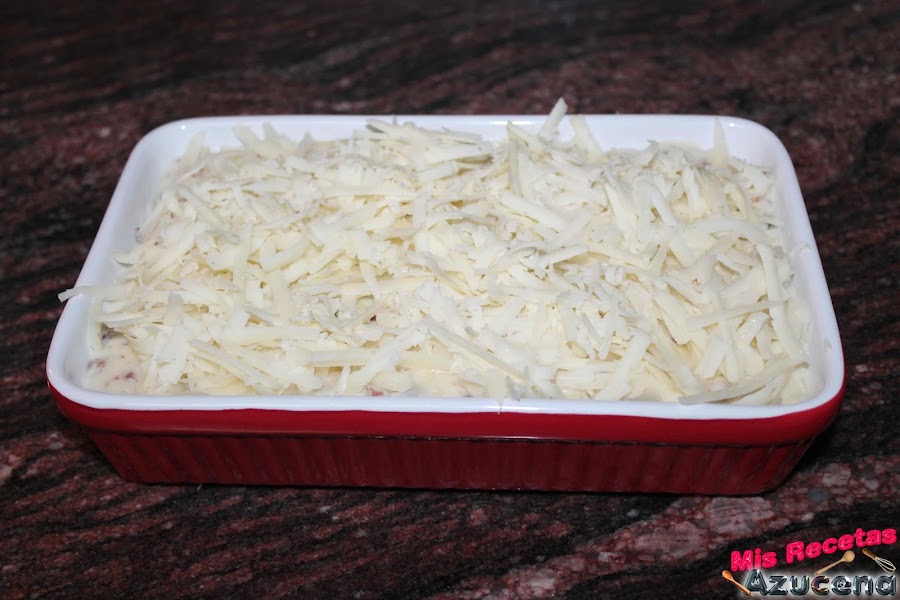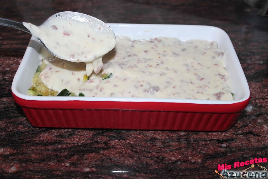 Una vez lista apartamos y la ponemos sobre los calabacines, ya solo nos queda cubrir con queso rallado, el queso que podemos poner es el que más nos guste a cada uno.