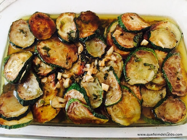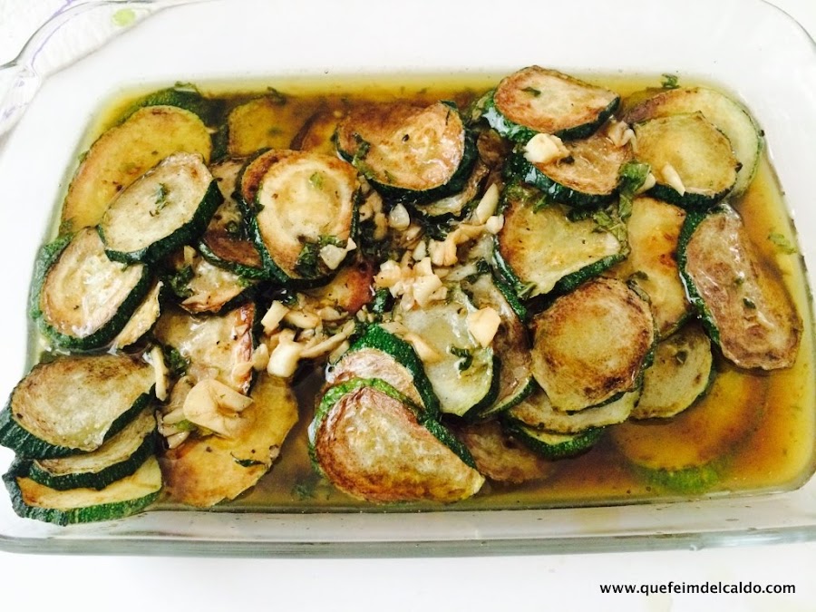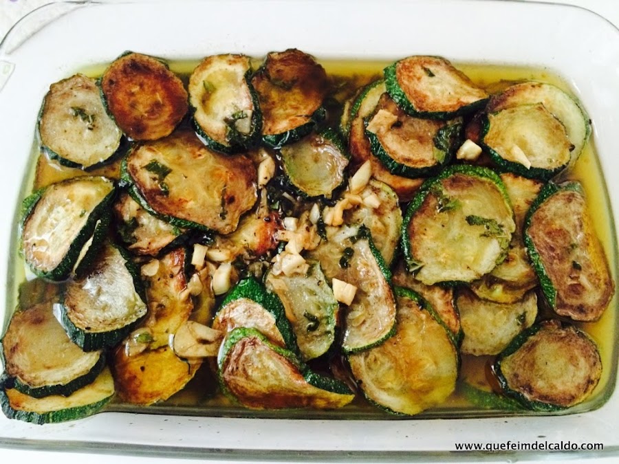 Ponemos el escabeche sobre los calabacines