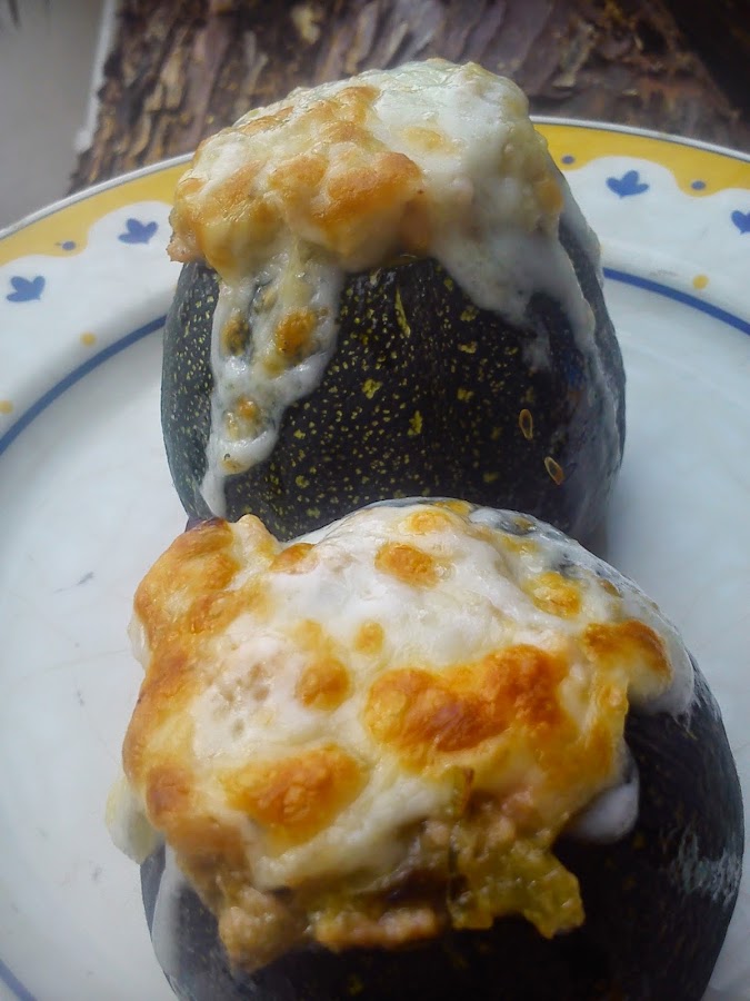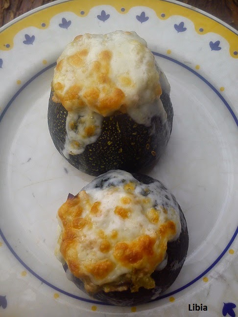 Rellenamos los calabacines y espolvoreamos con queso manchego rallado por encima y gratinamos hasta que esté dorado y listo para comer!!! En casa nos comemos el calabacín entero y nos chupamos los dedos :D