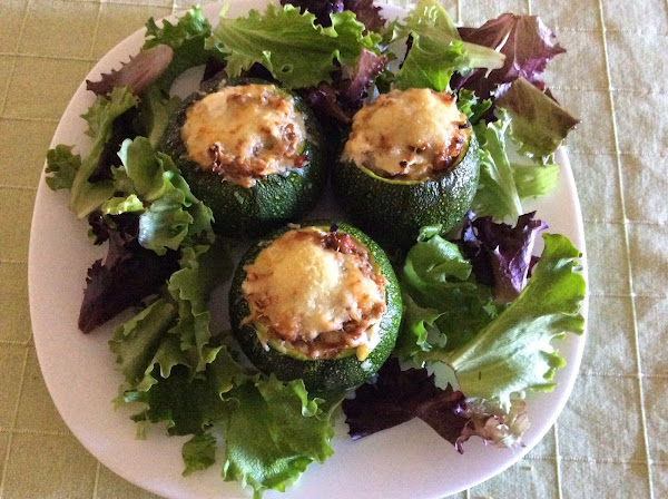 Con esta mezcla, vamos rellenando los calabacines y los acabamos con queso para gratinarlo.
