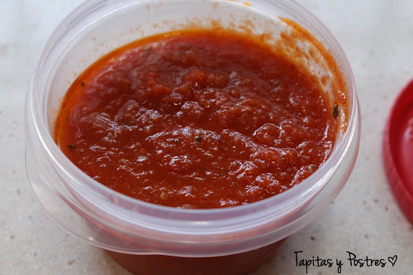 Si tenemos la salsa de tomate preparada, adelantaremos mucho. Esta es de tomate y albahaca (próximamente en el blog)