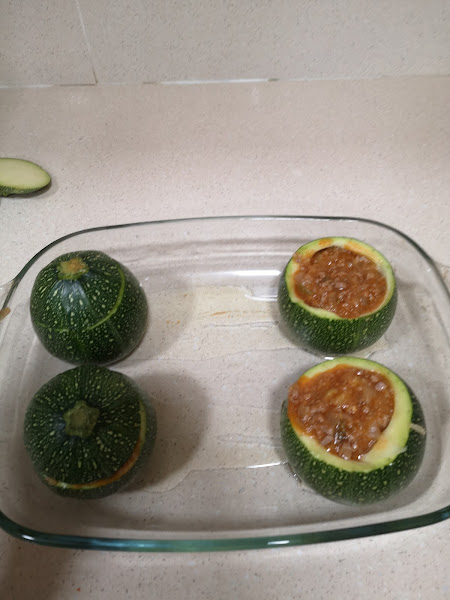 Dejar entibiar y rellenar los calabacines y ponerles encima queso para gratinar o el que más os guste.