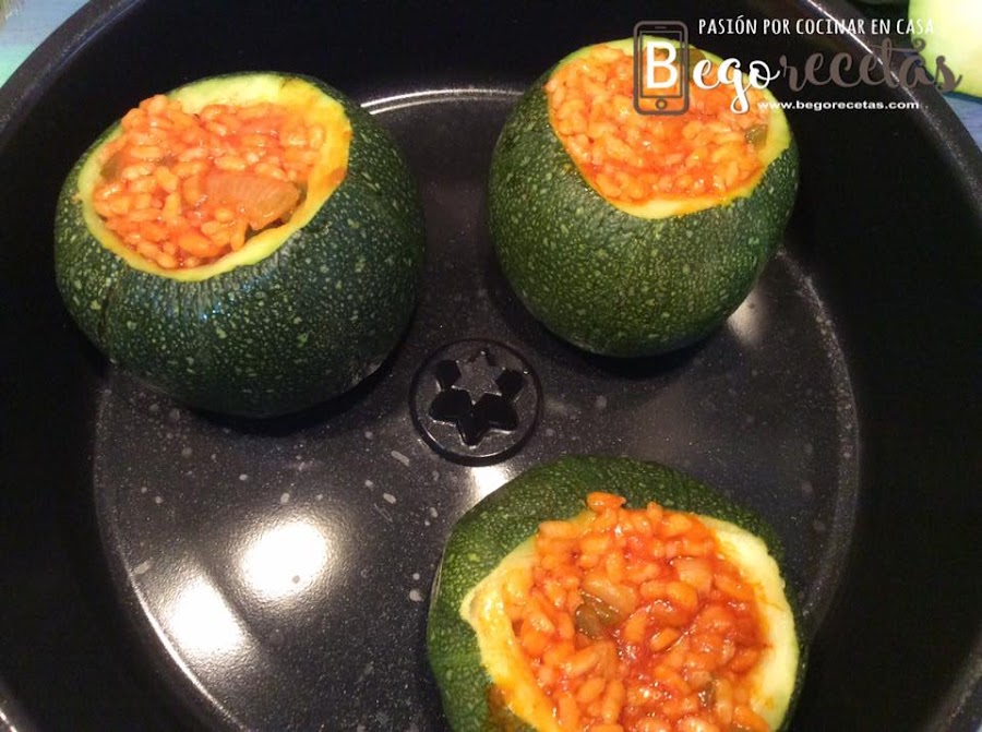 Mezclamos las verduras con el arroz y rellenamos los calabacines. Espolvoreamos abundante queso rallado por encima y gratinamos en Cecofry entre 7 y 10 minutos.