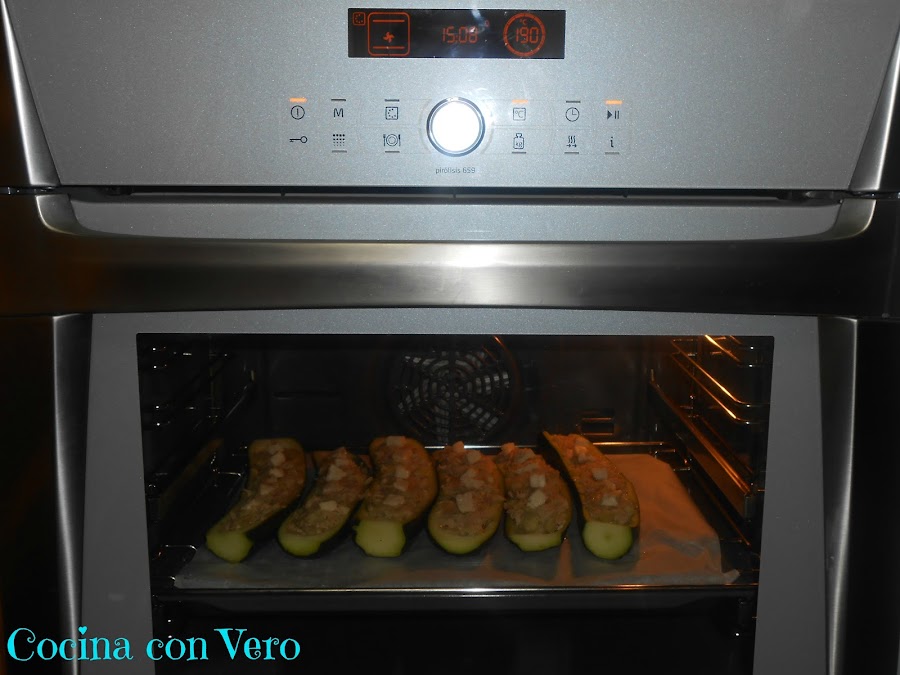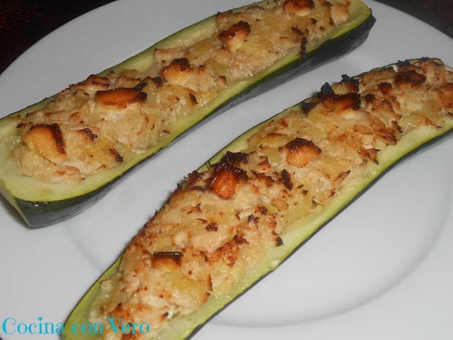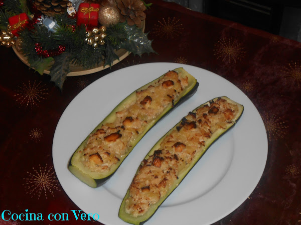 - 1 calabacin por persona sin pelar lavado y cortando los extremos para luego partirlo a la mitad por la parte de arriba del calabacin y poder quitarle después por dentro la carne blanca de cada mitad, pero sin llegar al final con ayuda del vaciador de patatas, reservándola previamente troceada en trozos pequeños.