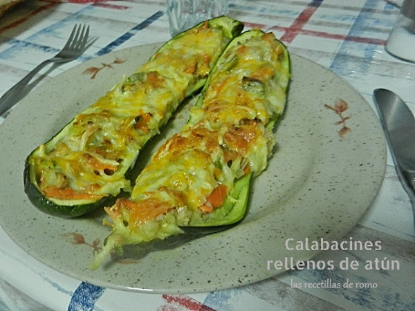 Estos calabacines rellenos de atun resultan ideales para la cena y es un plato ideal para que las verduras no resulten aburridas; yo los he rellenado con lo que me quedaba en la nevera pero quedará igual de rico si le añades otras verduras.