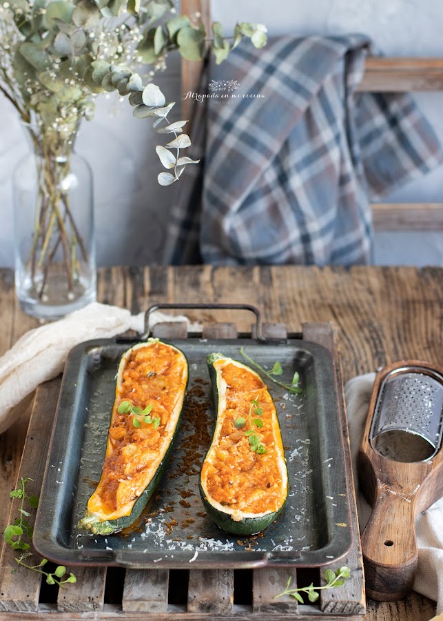 INGREDIENTES (os pongo ingredientes para un sólo calabacín, así que tendréis que doblar ingredientes por cada calabacín extra):