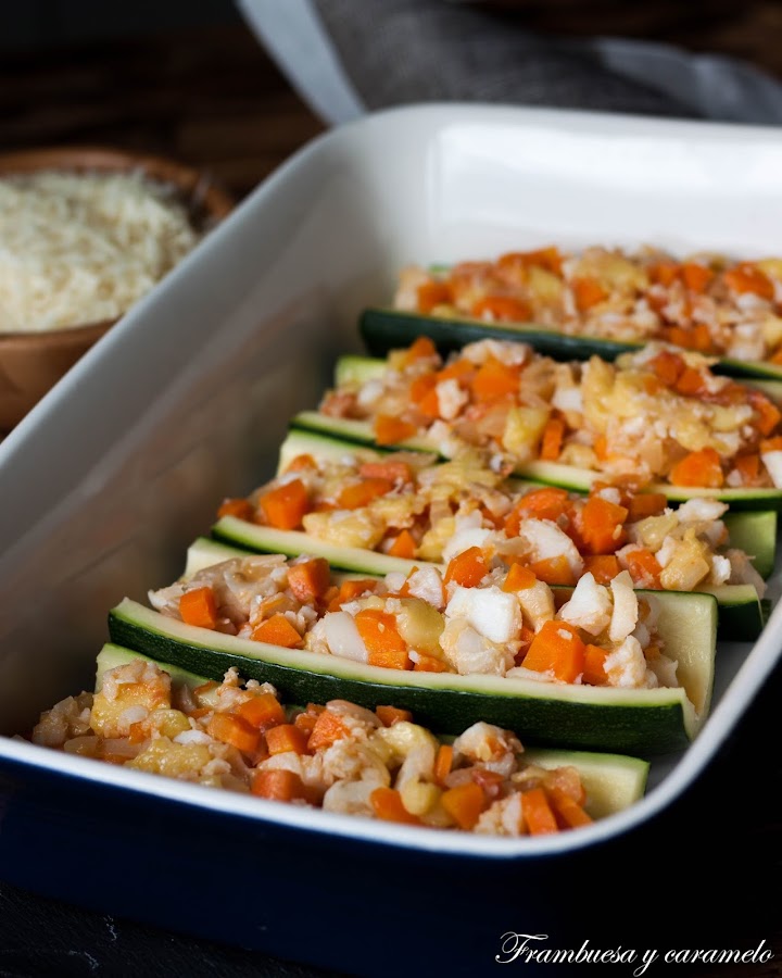 Estos calabacines rellenos de bacalao nos gustan mucho mucho a todos en casa, no digo más… Sí, voy a contaros alguna cosa más sobre ellos! Que son una forma estupenda de combinar verduras y pescado, que es algo que los niños no suelen comer con agrado, pero de esta forma puede ser más fácil de incluir en su dieta.