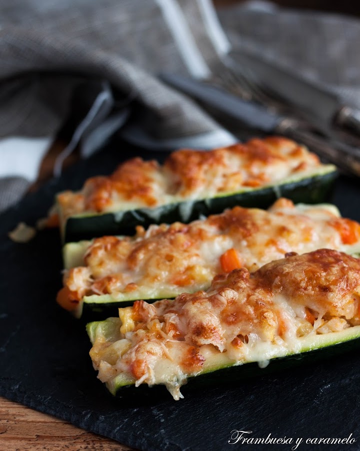 Me gusta hacerlos como os los enseño hoy, pero para conseguir que los niños los coman hago una salsa bechamel que añado sobre el relleno del calabacín y luego el queso encima, como las berenjenas rellenas que conocemos todos. Pero para nosotros no añado bechamel y están bastante ricos, eso sí la montaña de un buen queso curado rallado no puede faltar que al final es la gracia del plato!