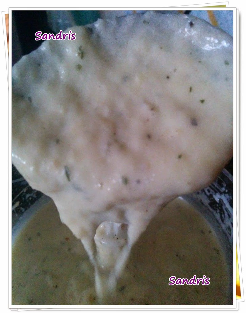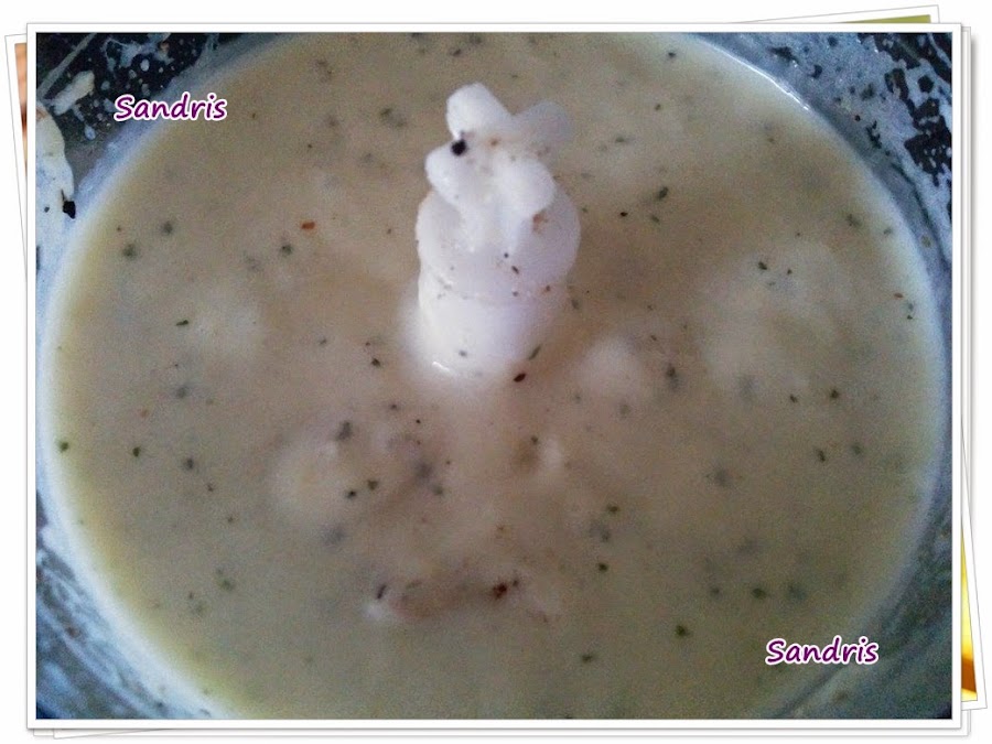 Pues nada, deshacemos el bacalao, hervimos una patata y la machacamos con el tenedor para tener tipo puré. Todo esto lo ponemos en la trituradora, batidora... cada uno lo que tenga. Agregamos la leche y la nata (crema de leche). Yo le puse solo un chorrito de cada, no demasiado porque tampoco quería que se quedara muy líquida la brandada. De todas formas, la textura de la brandada la podéis modificar luego de triturar. Si pensáis que se ha quedado demasiado espesa, pues le echáis un poco más de leche, volvéis a triturar y ya está., sin problemas. Normalmente las brandadas no las he visto con nata (crema de leche), pero como dije... me apetecía experimentar y ver qué tal salía. La brandada tampoco suele llevar calabacin, pero... ¿qué iba a hacer con la carne del calabacin? ¿tirarla? pues como que no, así que... "padentro" con toda la mezcla, así la brandada tendría también un sabor ligero a calabacin a parte del bacalao. En principio le puse solo un chorrito de aceite de oliva y el perejil. Lo trituré todo, lo probé pero... no sé... le faltaba algo, así que probé con un poco de pimienta negra (como os dije, siempre se puede modificar a última hora), lo volví a mezclar pero aún le faltaba un toque de algo más, así que le puse un poco más de pimienta negra y nuez moscada que me apetecía darle ese toque especial esta vez a la brandada. Volví a mezclar, lo probé y dije... ahora sí!!! Perfecto!!! :-)