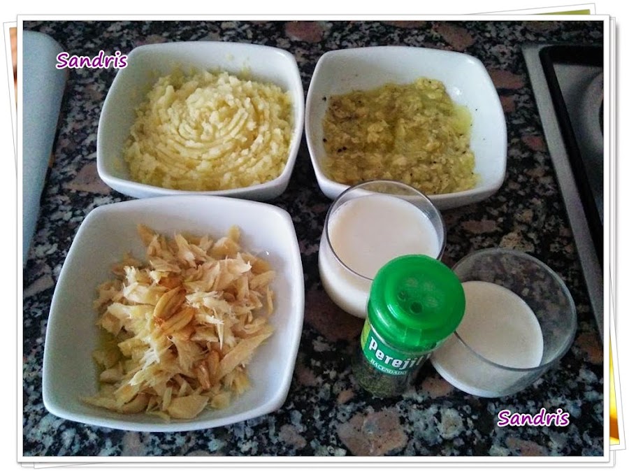 Hace tiempo hice brandada y en casa gustó mucho. Y como mi madre me dió un trozo de bacalao pensé... a ver qué hago esta vez... ¿croquetas de bacalao? y dije... muy típico y además en el congelador ya tengo croquetas de varias clases... pensé en varias recetas más, una de ellas que tengo pendiente que algún día de estos haré y os la enseñaré, pero mira, me decidí por la brandada pero esta vez diferente a la que hice la primera vez. Que por cierto... creo que no os he puesto la receta aún de mi primera brandada :-( Es que tengo tantas recetas para publicar que no doy abasto... :-(