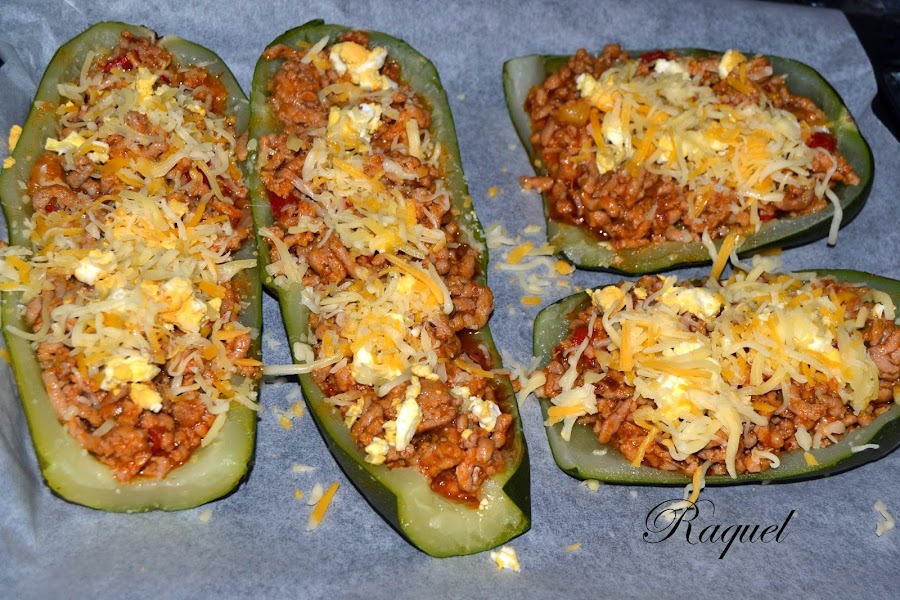 Esta mañana temprano a cogido mi marido del huerto una caja con calabacínes y os podéis imaginar que voy a cocinar no, pues si calabacín relleno de carne para todos.