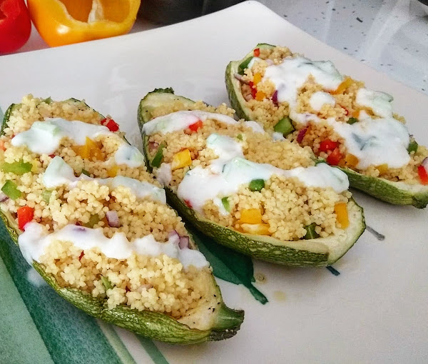 Rellenamos los calabacines con el couscous y volvemos a hornear unos 10 minutos.