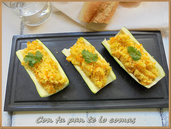 Hoy te presento otra versión a mi manera del cuscús con verduras, y es que descubrí hace un tiempo que pochando las verduras ralladas en vez de cortadas en daditos, el cuscús queda insuperable! Lo hago habitualmente como acompañamiento de carnes o pescados, pero también se pueden rellenar unos calabacines como hoy. En caso de que lo vayas a usar como guarnición puedes rallar el calabacín entero incluyendo la piel. De cualquier manera, te lo recomiendo cien por cien.