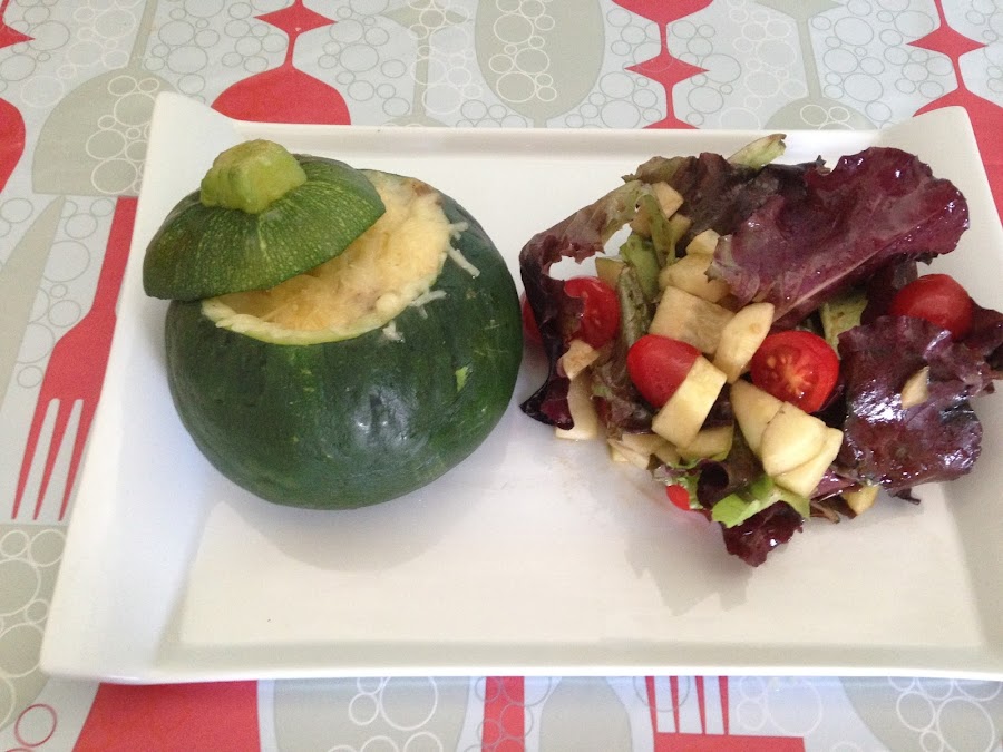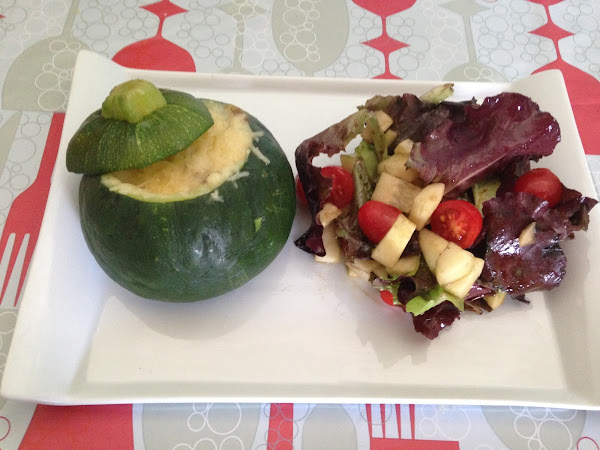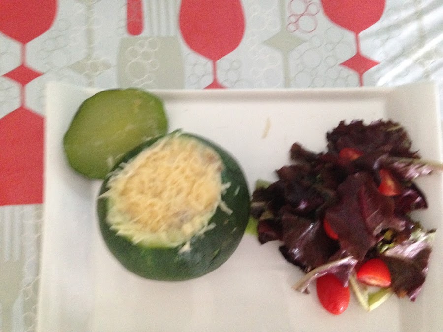 Ésta semana unos calabacines rellenos de gambas. La idea me surgió en la frutería cuando vi unos preciosos calabacines luna y pensé en rellenarlos de algo diferente ya que siempre hago las clásicas berenjenas o calabacines rellenos de carne picada y la verdad es que estoy contenta con el resultado. No es que sea muy ligth pero estaba de muerte abuela!(frase de Sirah también).