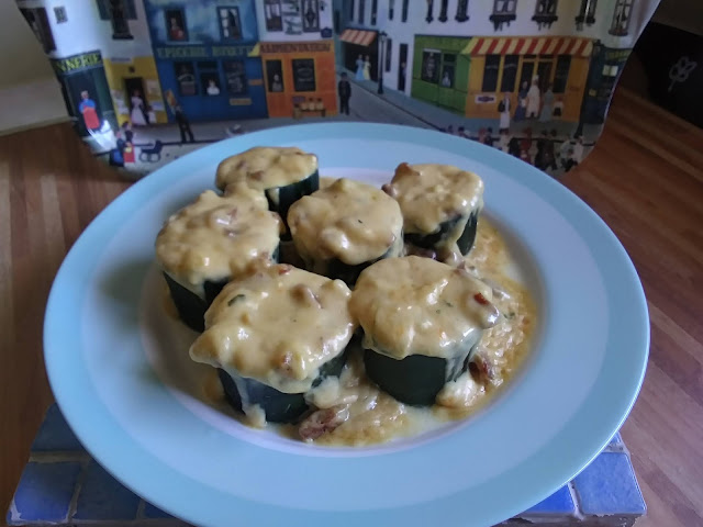 Rellenamos los calabacines con la crema e introducimos 10 minutos más en el micro.