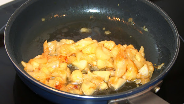 Saltea la pulpa en un poco de aceite de oliva y cuando esté dorada y bien hecha deja que se enfríe.