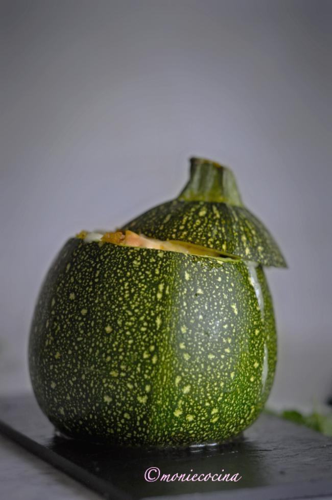 Cortamos la tapa y vaciamos con cuidado, picamos la carne de los calabacines. (Yo he usado solo la carne de 2 porque con el relleno sobraría, lo podemos guardar para una crema de veduras)