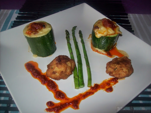 Por último os contaré que yo le quise dar al plato una presentación especial y por eso corté los calabacines de esa forma. Una manera más tradicional de servirlos sería partirlos en dos con un corte longitudinal pero la forma de servirlos ya os la dejo a lo que a cada cual le nazca. De momento, nos pondremos el delantal y nos meteremos en cocina ¿ os venís?