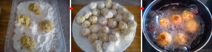Agregamos un puñado de pan rallado, mezclamos y, con éste preparado, vamos haciendo nuestras albóndigas. Las pasamos por harina y las freímos.